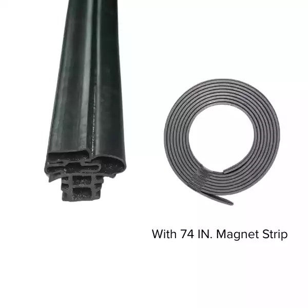 Measure the gasket’s length and height in inches, and check how it is mounted on the door.